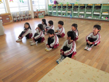 年中さんは年長の部屋に入りました。先生の話を聞く姿勢もピンとしてかっこよくなっていました。