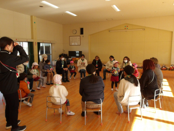 年中による「へんしんトンネル」のペープサート、年少による「いとまきの歌、年長さんへの替え歌バージョン」の手遊びを披露してくれました
