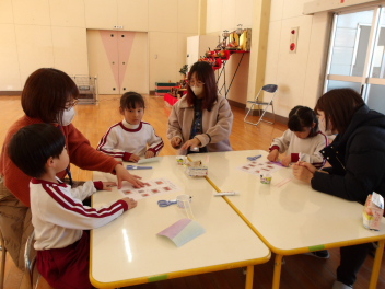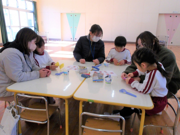 難しいところは、少し保護者の方に手伝ってもらいながら、友達と色を合わせたりしながら作る子もいましたsad