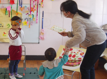 保育参観後の懇談会では、担任からこどもたちの成長や就学に向け意識したいことなどをお話ししました。
