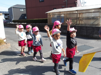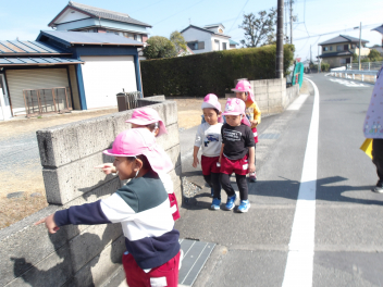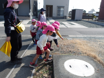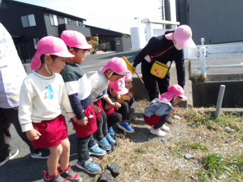 今日は暖かい日だったので年少うさぎ組が散歩に出かけました。