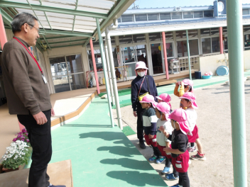 園に戻ったら園長先生に「梅を見てきたよ」「ピンク色だった」とお話ししました。