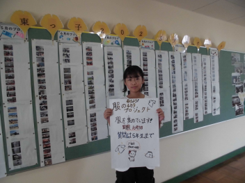 北浜東小学校では、2学期に入り、5年生が主体となって、全校児童に「着なくなった子供服の回収」を呼び掛けています。回収した服は、難民などの服を必要とする人々に届けられます。