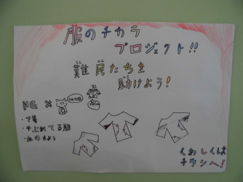 3日まで回収していますので、御自宅に眠っている子供服がありましたら、御協力よろしくお願いします。