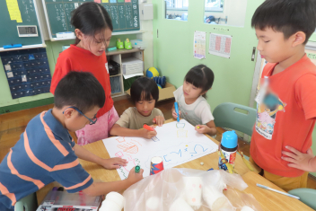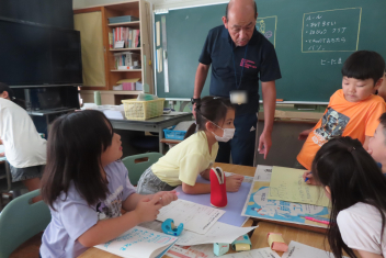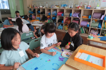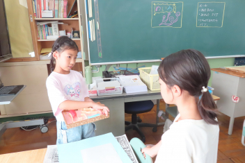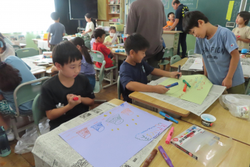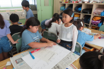 •  2年生は、生活科の学習で「おもちゃランド」の準備をしています。1年生や幼稚園の子が喜んでくれる姿を思い浮かべながら、作ったおもちゃの遊び方を考えています。班でルールを考えたり、看板を作ったりしていました。みんな張り切っていました。