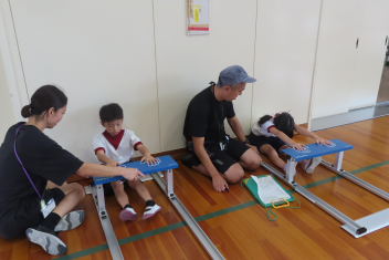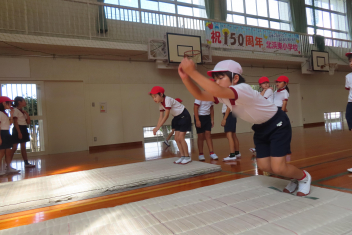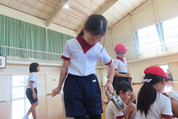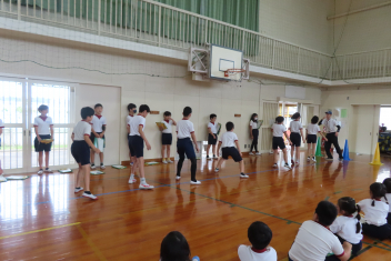 全学年で新体力テストを行いました。新体力テストとは、健康で元気に生活するために必要な、走る、跳ぶ、投げるなどの体を力強く動かす能力を調べるものです。1年生は6年生と、2年生は5年生とペアになり計測しました。昨年の自分の記録よりも記録が伸びた子は、手をたたいて喜んでいました。