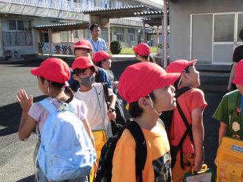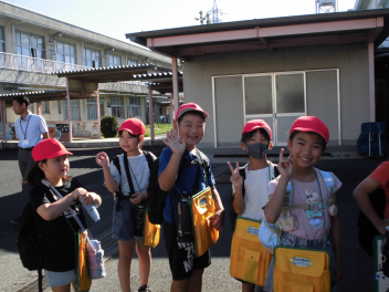 1年生は、2年生の校外学習の見送りをしました。また、小学校生活半年が経過し、校長と記念撮影をしました。