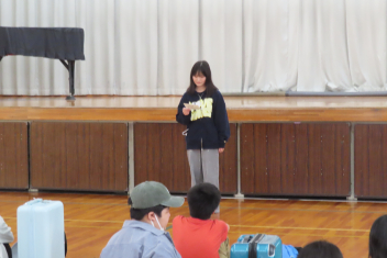 6年生は、産休に入るALTに日頃の感謝の気持ちを込めて、「英語で作成した手紙」を手渡しました。