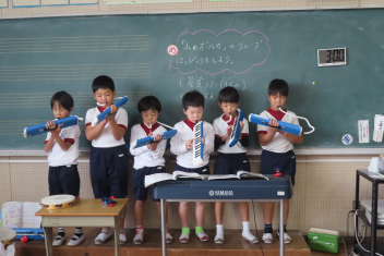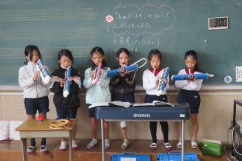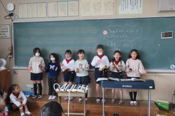 本日、開校150周年の節目を全校児童で祝い、愛校心を育むために「150周年を祝う会」を体育館で実施しました。