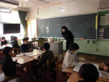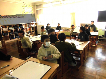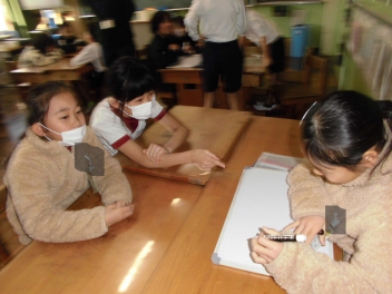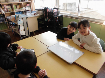 ② グループを作り、学級担任のお題に合わせて、グループで考え、相談して、決めた答えを「ホワイトボード等」に書きます。