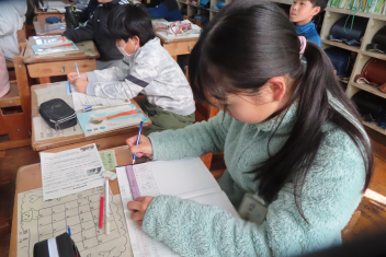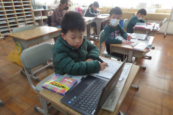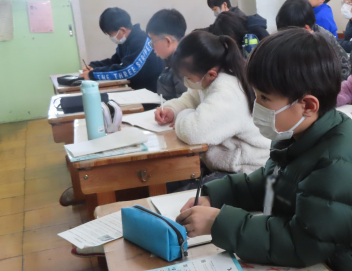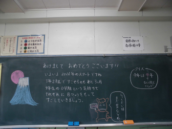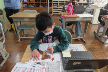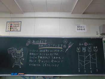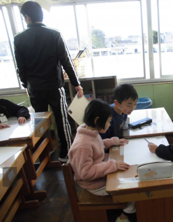 ① 学級担任は、冬休みに関連するお題(クリスマスに食べた物やお年玉で買った物、初詣の願い事等)を出します。
