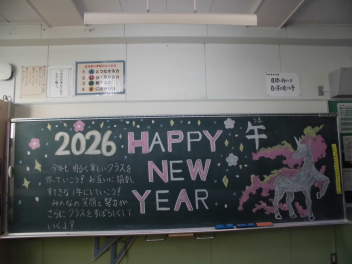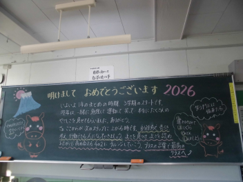 3学期が始まり、学級担任から教室の黒板に「素敵なメッセージ」がありました。