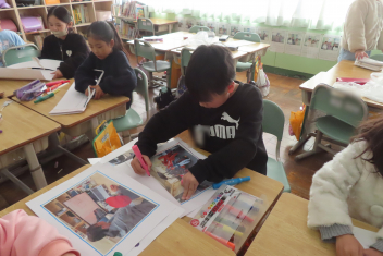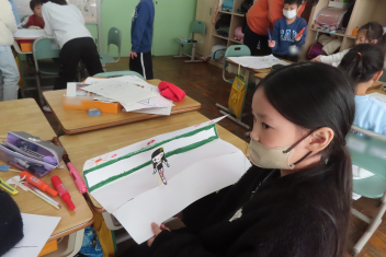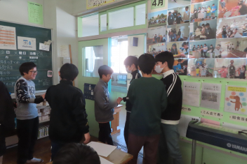 1年生は、「給食を一緒に食べたい」と招待状を校長室に持参し、会食の依頼をしました。