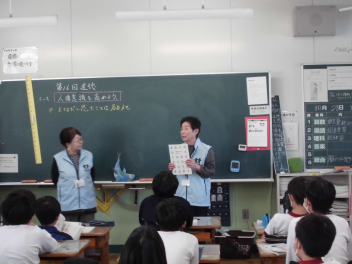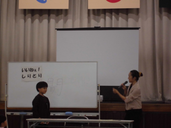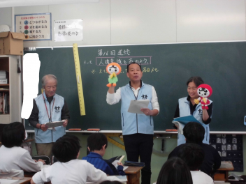 最後に、「人権擁護委員の皆様」から、悲しい思いをする人が一人もいないように、友達と楽しく生活するためには、「相手の気持ちになって話したり、行動したりすること」、「自分の気持ちをはっきりと伝えること」、「困ったことは、相談することが大切であること」をわかりやすく、教えていただきました。
