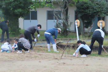 10月26日日曜日、天気予報は雨でしたが、「運動会をきれいな運動場で行いたい」という願いが伝わり、PTA奉仕作業を運動場で行うことができました。大人と子供合わせて200人が集合し、雑草取り、側溝掃除、運動会で使う机やいすの汚れ拭きを行いました。みんなで協力するときれいになってうれしいなと感じた1時間でした。参加してくださった皆様、ありがとうございました。運動会はきっと成功します!!
