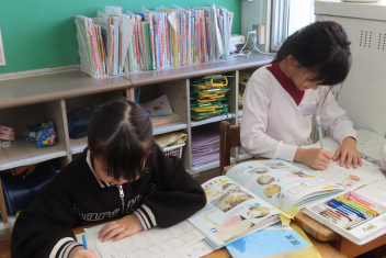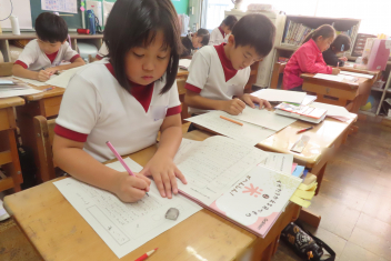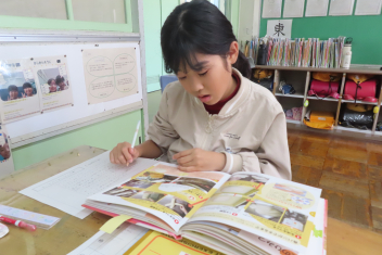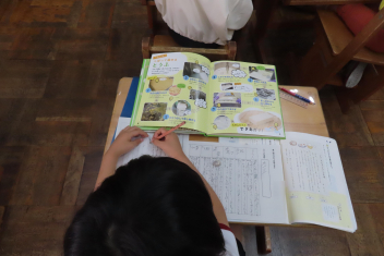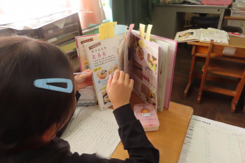 •  3年生は、国語科で「すがたをかえる大豆」の学習をしています。学習したことを生かして、自分が選んだ食べ物がどのようにすがたをかえるのかを本で調べ、まとめていました。牛乳、米、小麦などがどんな工夫をしてどんな食べ物になるのでしょうか。変身ブックの完成が楽しみです。