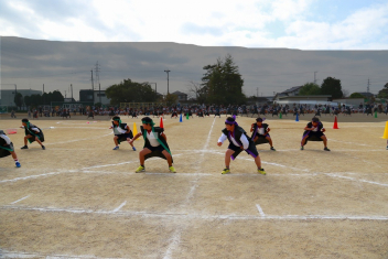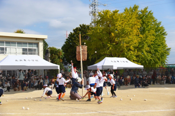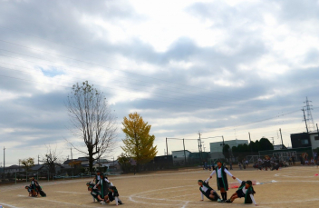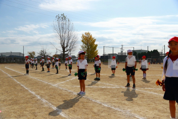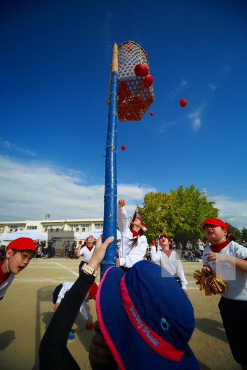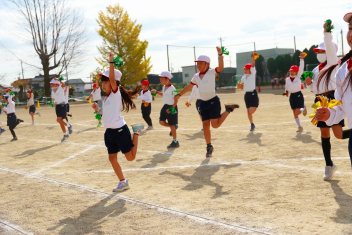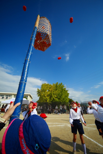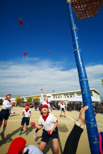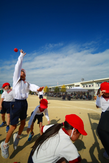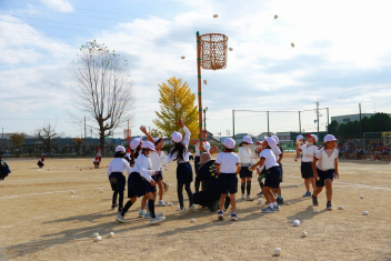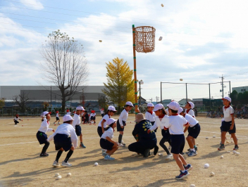 <青空の下、思いっきりジャンプして玉入れをしました!>