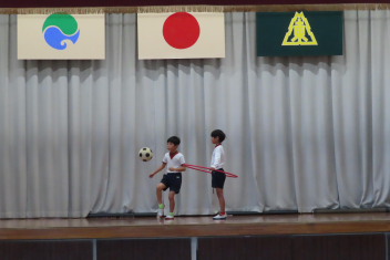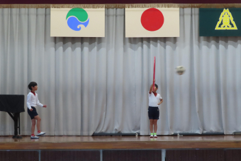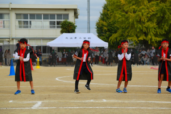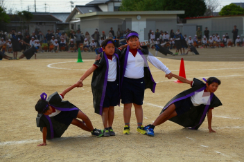 1年生は、入学して8か月が経ちました。いつも先輩であり、隣りの教室で交流している2年生のダンスを手本に頑張りました。1・2年生の息ぴったりの「150周年 ハピネスダンス」。とても暑かった1学期に外部のダンス講師の先生からレッスンを受け、頭から足先・指先まで意識して、気持ちを込めてダンスをすること、楽しむことを学びました。