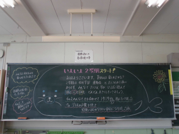 2学期に頑張ることを一人ずつ発表しました。東っ子たちの発表からは、11月に開催予定の「150周年記念運動会をがんばりたい!」が一番多く、他には「あいさつをがんばりたい!」、「算数をがんばりたい!」等それぞれの東っ子たちの思いが伝わり、心がぽかぽかになる素敵な時間となりました。