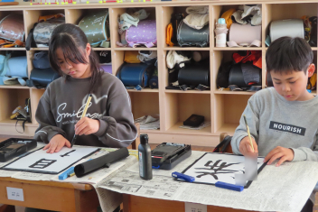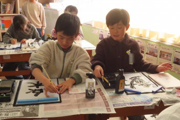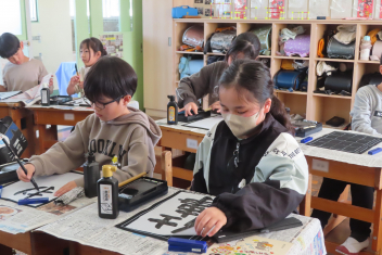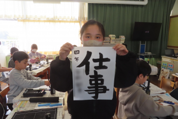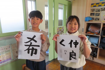 4年生は、書写の時間に「4年生の1年間を言葉で表すと?」について考えました。子供たちは、じっくり考えながら「元気」「希」「仲良く」「必」「努力」「協力」「挑戦」などの言葉を理由を付けて発表しました。中には、「仕事」と答えた子がいます。係の仕事や新しく始まった委員会の仕事など自分に任された仕事をきちんとやり遂げたからだそうです。書写係の彼女は、準備や片付け、みんなへの指示など自分の役割を果たそうと一生懸命に取り組んでいて、なるほどと思いました。1番多かったのは、「楽」でした。1年間みんなと仲良く安心して過ごせて楽しかったそうです。幸せな1年になり、よかったですね。