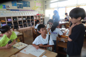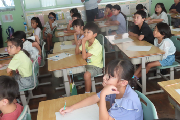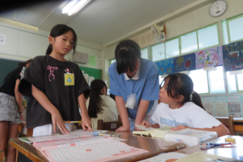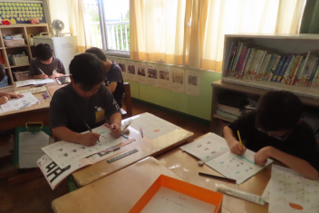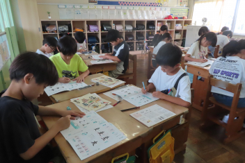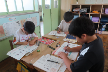 •  4年生は、書写で「漢字と平仮名の違いに注意して書く」ことを学習しました。最初に同じ読み方の漢字クイズ、次にグループで漢字頭しりとりをしました。知恵を出し合い、辞書とにらめっこをしながら、全グループ1枚は仕上げられました。中には、プリント4枚分考えたグループもありました。最後に書写ワークに漢字との違いを意識しながらひらがなを書きました。真剣に協力して学習に向かうことができて素晴らしいです。