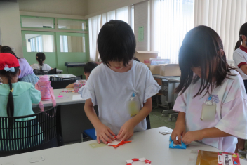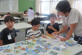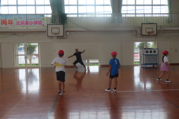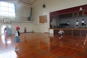 2学期初の遊びランドを開催しました。5人の東っ子のびのび応援隊の方に一緒に遊んでいただきました。4年生がバドミントンを体験しました。「昨年は、ラリーが続かなかったけれど、今回はラリーが続いてうれしかった。」「スマッシュを打てるようになって楽しかった。」という意見が聞かれました。特別室では、かるたやオセロ、折り紙、ブロックなど思い思いのもので楽しそうに遊んでいました。応援隊の方に見守られながら、ゆったりまったり過ごせるのが遊びランドのよさだと思います。