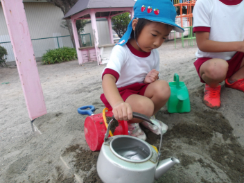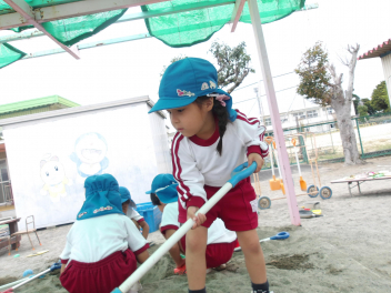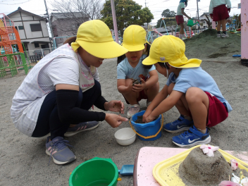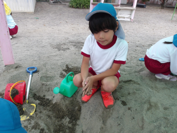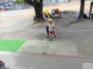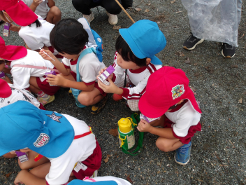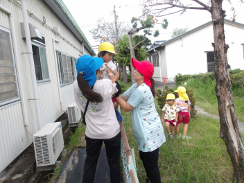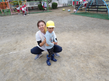 雨が上がり、園庭に出て遊んでいました。