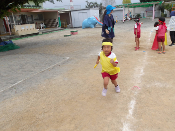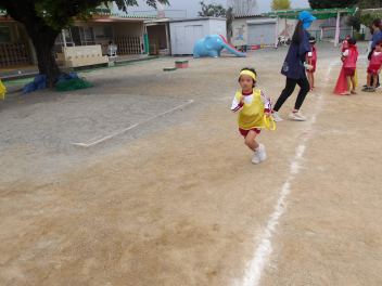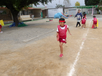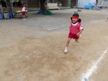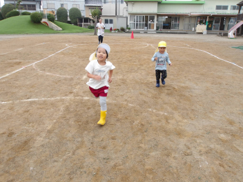 あじさい組やばら組のお友達が運動会ごっこをしているのを見て、自分たちも勇んで走り出しました!