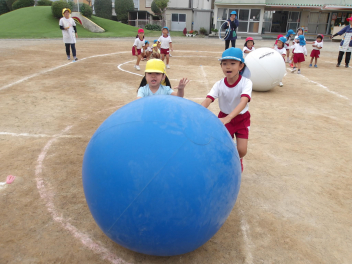 リレーが終わると、今日は、大玉転がしもやりました。
