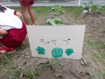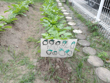 まずは、あじさい組のこどもたちが植えた、ダイコン、キャベツ、ブロッコリー、カリフラワーの様子です。