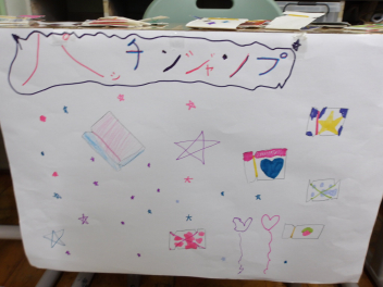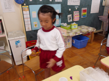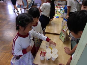 でも、実は、もう準備万端のお店屋さんもあって、たんぽぽ組やばら組のお友達に、「お店屋さん、やってま~す!!」と声を掛けに行っているお友達もいました。