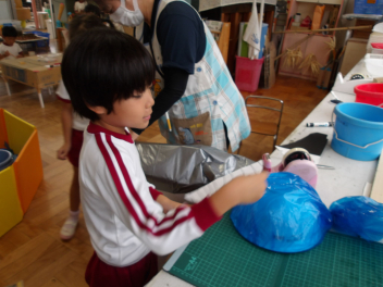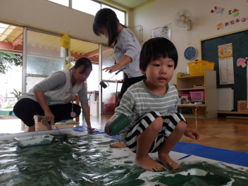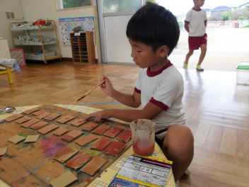 今日はどのクラスも、絵具を使って制作活動をしました。