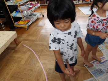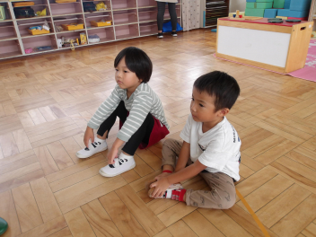 今日もたんたんぽぽ組は、1人風邪で欠席で、2人だけです…
