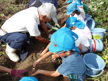 こどもたちは、畑ママさんや地域の方にお手伝いしてもらいながら、黙々と土を掘って、サツマイモを探していました。