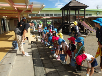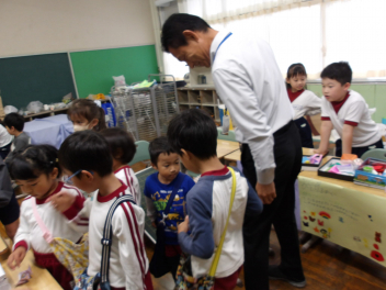 校長先生もみんなが活動している様子を見に来てくださり、幼稚園の子たちに話しかけてくださいました。