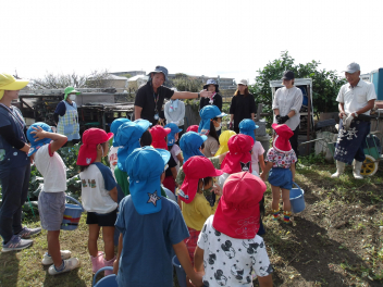 皆さんに「よろしくお願いします」の挨拶をして、早速、サツマイモ掘りをしました。