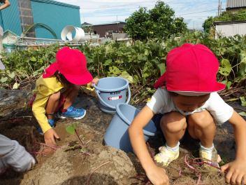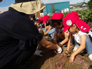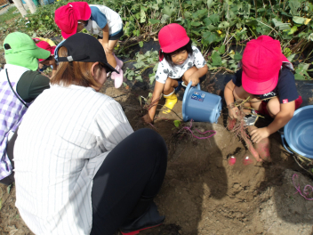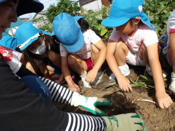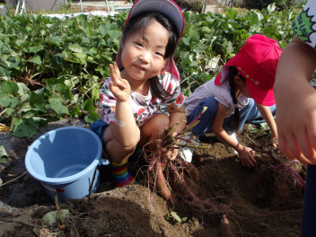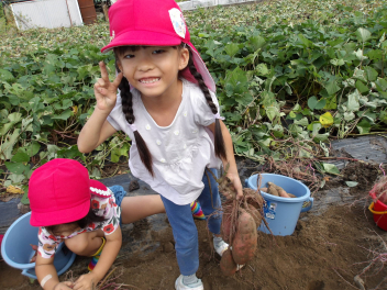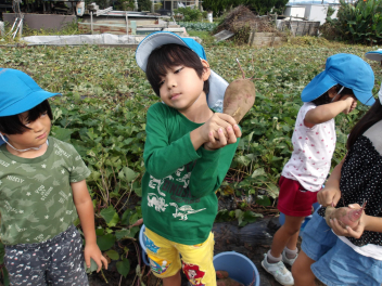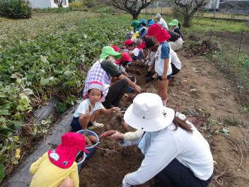 今日のサツマイモ掘り、こどもたちもとても楽しみにしていました。