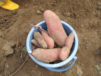• 地域の方の畑をお借りしてツル差しをしていたサツマイモの収穫時期になりました。