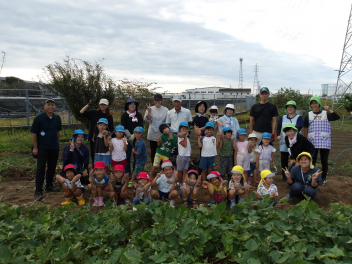 サツマイモ掘りが終わって、みんなで記念撮影をしました。