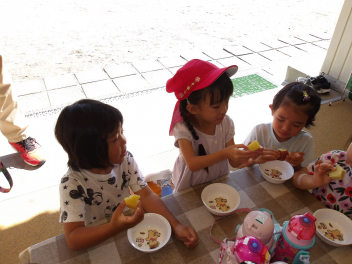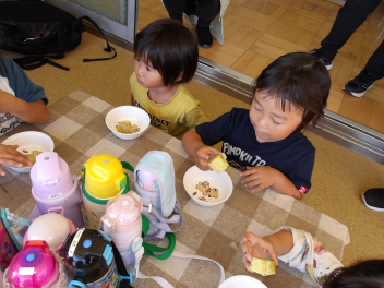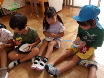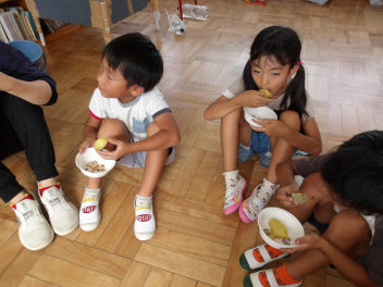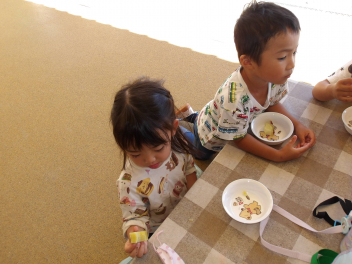 幼稚園に帰ってきてから、掘ったお芋を園務員さんが蒸かしてくれました。