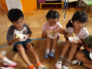 みんな、自分たちで掘ったサツマイモ、とても美味しそうに食べていました。