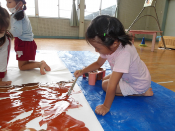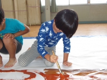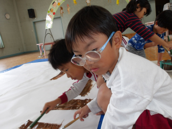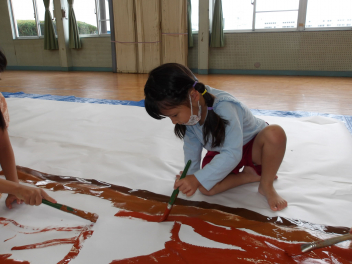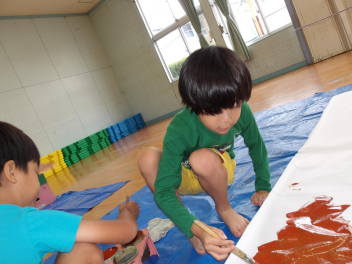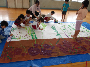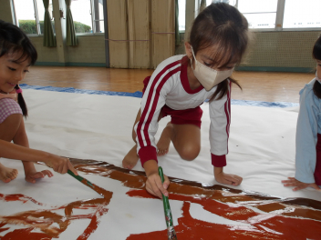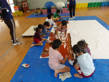 みんなで協力してかいて、とてもダイナミックな絵になりました。