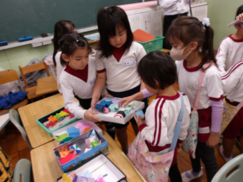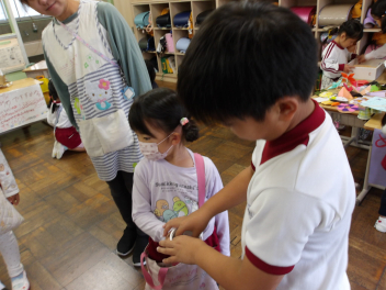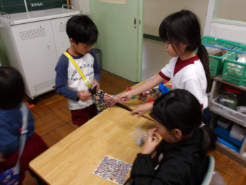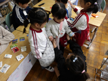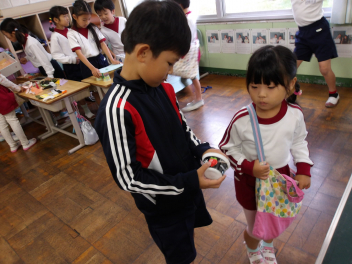幼稚園のこどもたちは、2人のペアで行動しました。2年生のお兄さん、お姉さんたちが、とても優しくしてくれたお陰で、どのペアもとても楽しんでいました!!