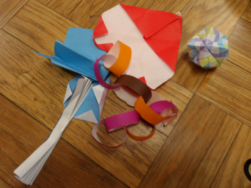 壁の絵具が乾いてから、みんなで飾り付けをしました。