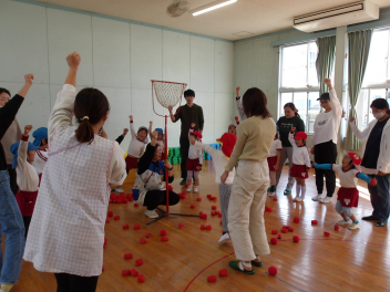 こどもたちもおうちの方々も、ジャンボリミッキーのダンスを踊り、大盛り上がりの「ダンシング玉入れ」でした。