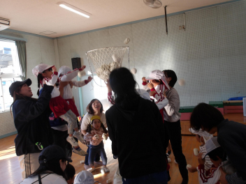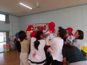 2回戦目は、おうちの方に抱えてもらって、玉入れです!!