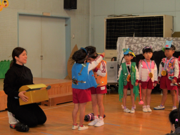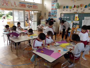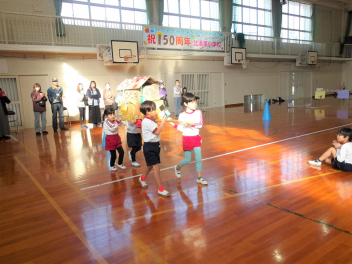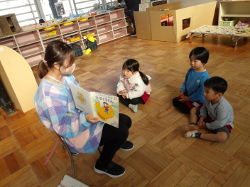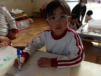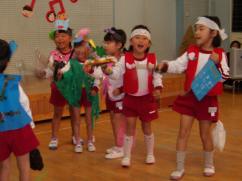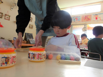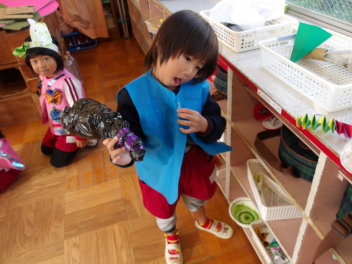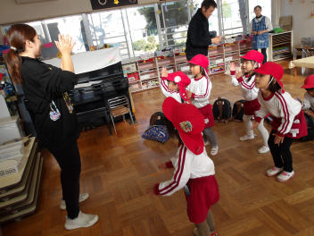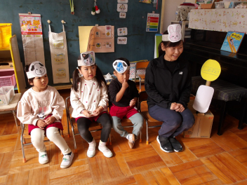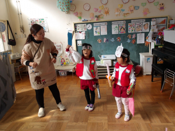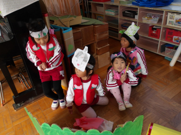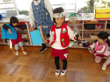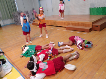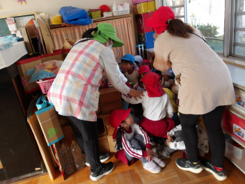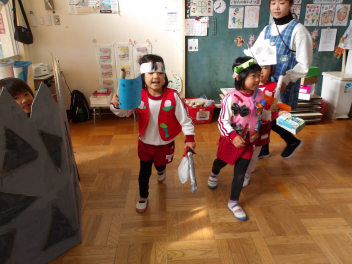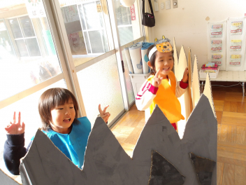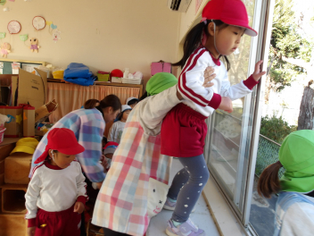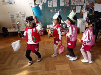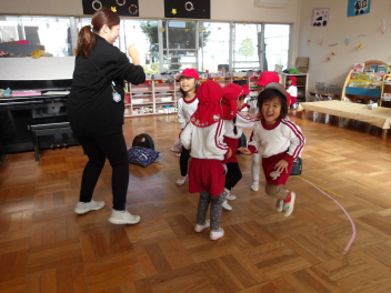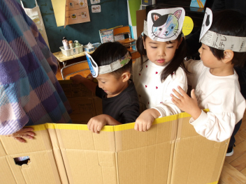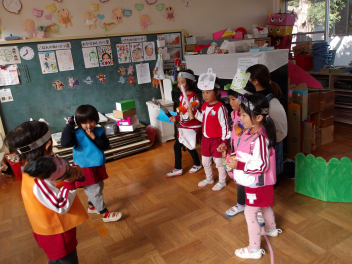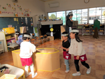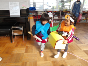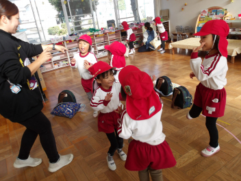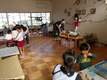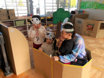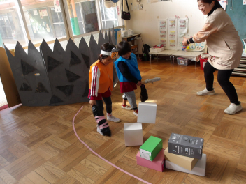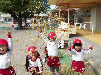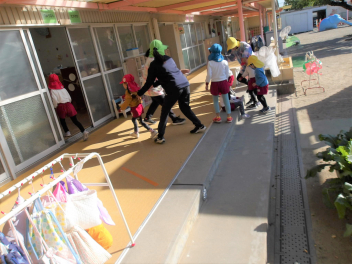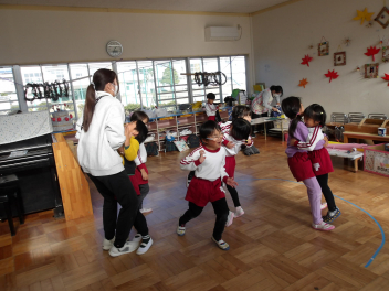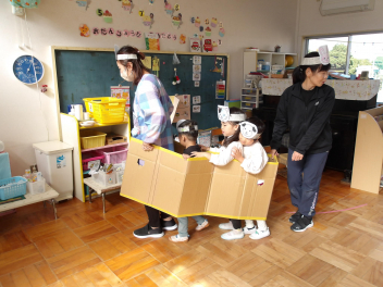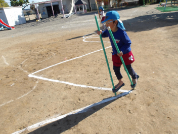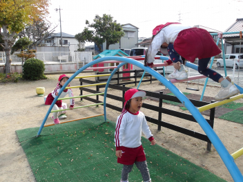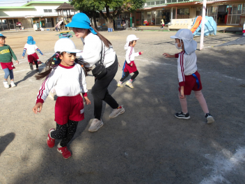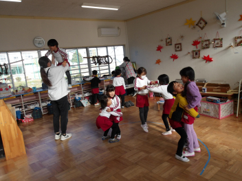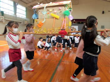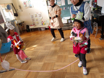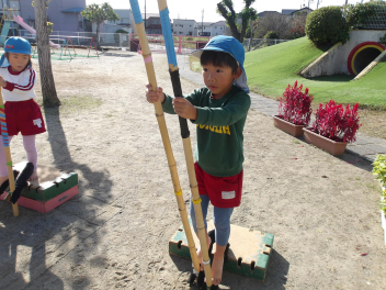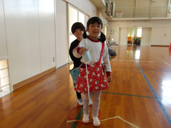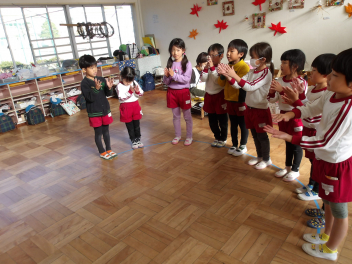 今日は、年中組と年長組のこどもたちが、一緒に遊んでいました。