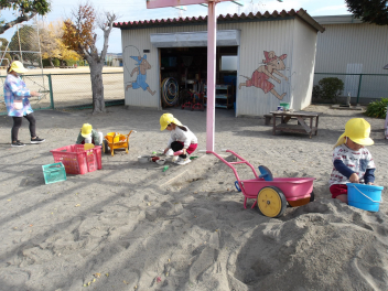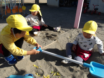 年少組の3人は、砂遊びが大好きだよね~。