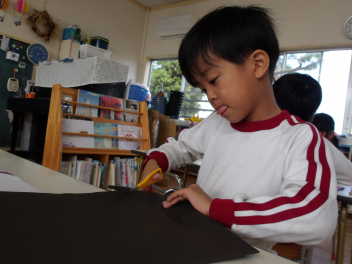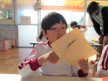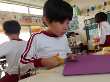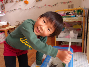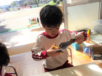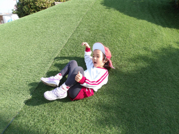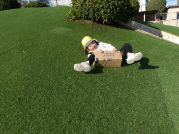 年少さんは、担任の先生に段ボールを切ってもらって、草滑りも楽しみました。