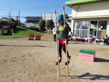 始めの会の後、早速1番の子から、竹馬の発表が始まりました。
